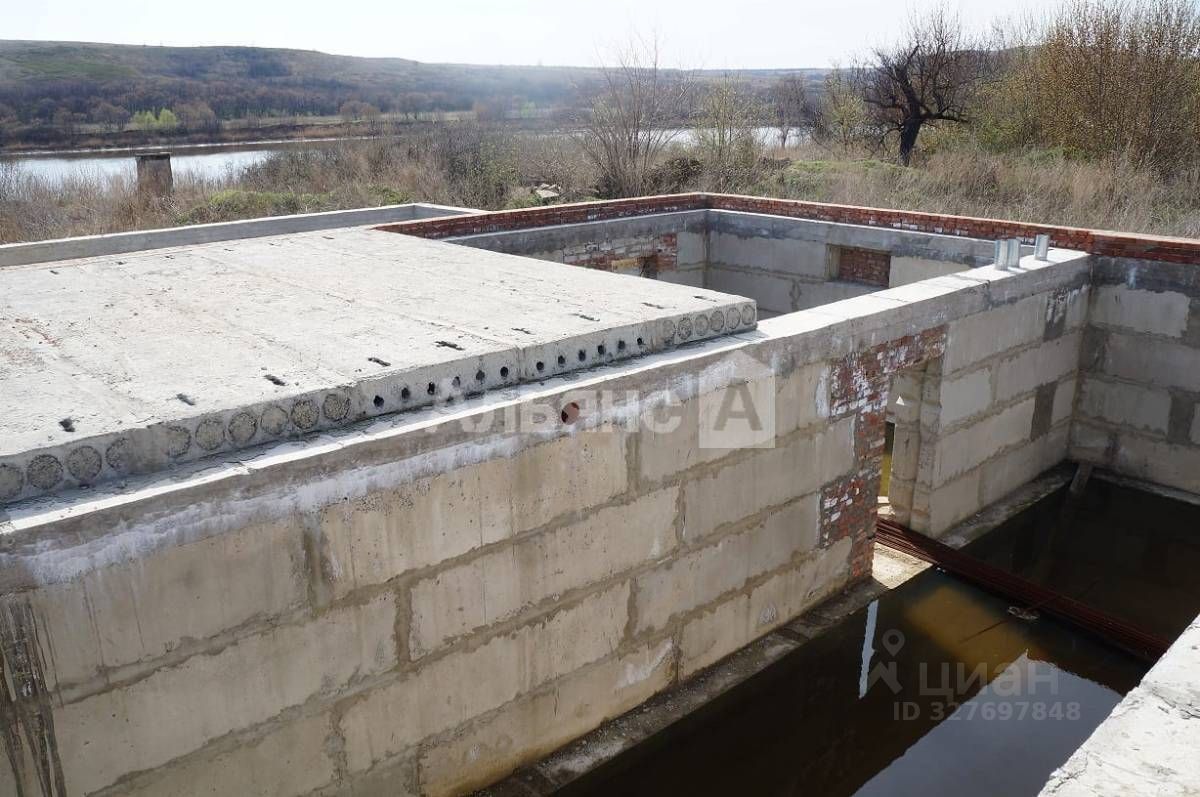 Дом площадью 100 квадратных метров выполнен из кирпича. Этот дом построен под одной крышей с двумя большими гаражами, общей площадью 200 кв.м. Дом предназначен для персонала. В нем две комнаты, огромная кухня, совмещенный санузел. В доме все удобства, вода в дом подается из колодца, центральное водоснабжение по меже, есть сливная яма, отопление - угольный котел. На участке заложен фундамент основного дома с цокольным этажом, общей площадью 400 кв.м., перекрытия ж/б плиты. Участок по периметру огорожен трехметровым шлакоблочным забором. Объект находится в живописном, экологически чистом месте, в хуторе с казачьими устоями и самобытными традициями на берегу реки Северский Донец. Прекрасное место для рыбалки, отдыха, зарождения творческих планов и идей. Поскольку участок находится по первой береговой линии, есть великолепная возможность оборудовать собственный пляж. Участок находится на возвышении, что исключает риск подтопления. Хутор находится в пяти километрах от города Белая Калитва, транспортное сообщение регулярное. Инфраструктура развита.