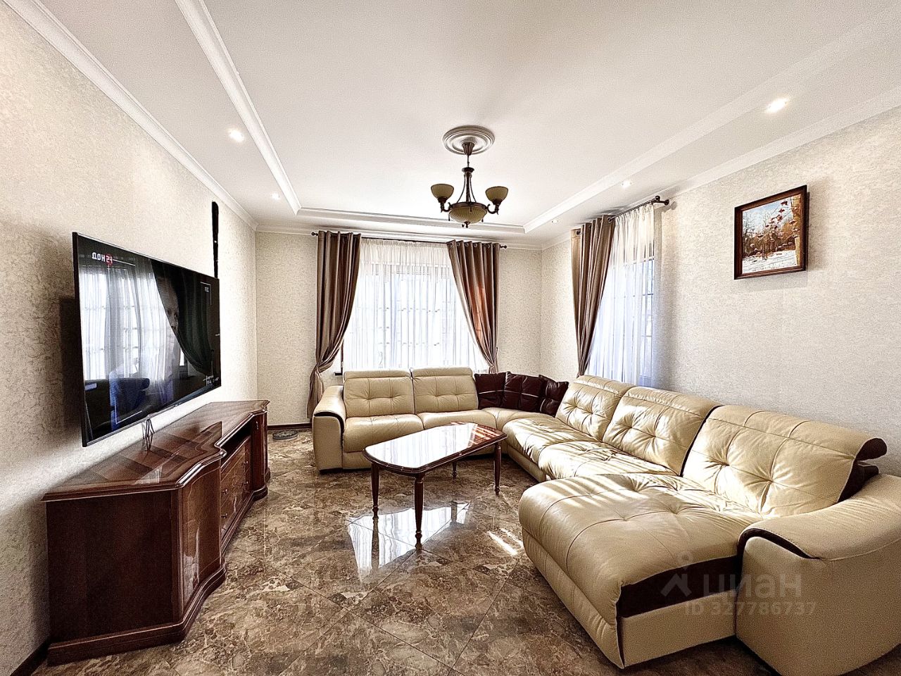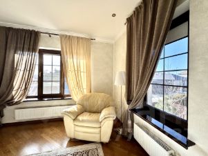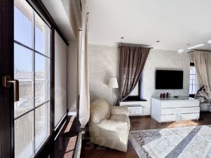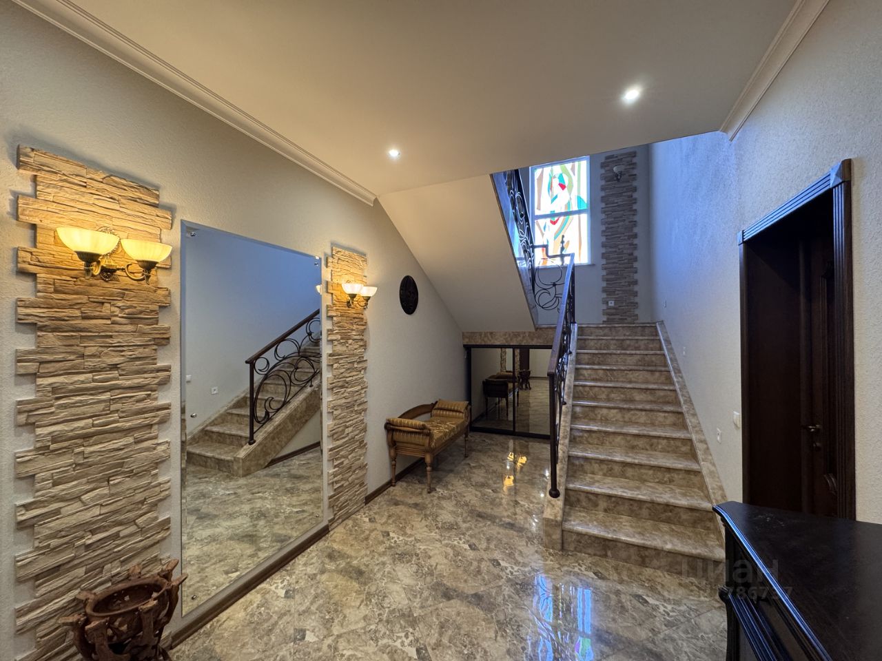 Ясная Поляна. Площадь дома составляет 230 квадратных метров, участок 7 соток. Интерьер выполнен в классическом стиле с использованием натурального камня и ценных пород дерева.