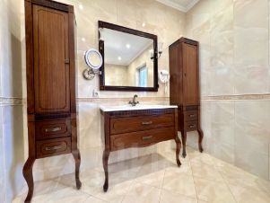 материалы европейских брендов, паркет из массива, сантехника от дизайнерских брендов, лестница из натурального камня. Мебель из натурального дерева.