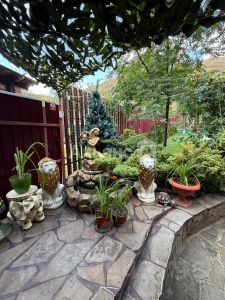 Коммуникации: свет, центральный водопровод. Участок с ландшафтным дизайном площадью 3.37 сот.. На участке расположены мангальная зона. Предусмотрен въезд для автомобиля.