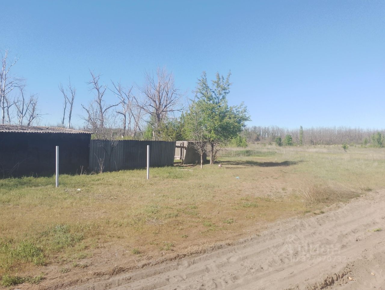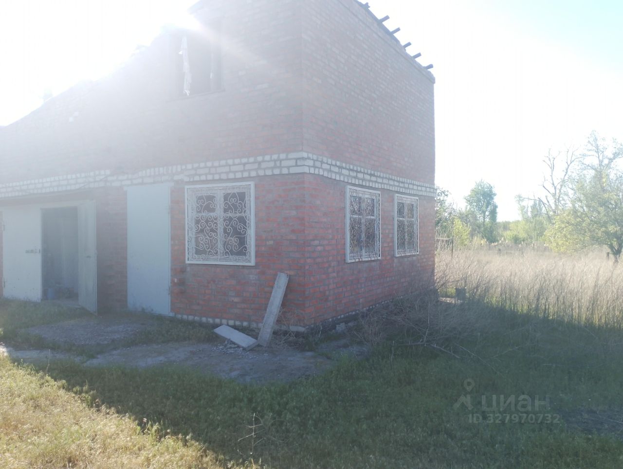 На участке находится недостроенный кирпичный дом, для второго этажа уже заготовлен кирпич. Также на территории расположены душ, туалет и колодец для полива.