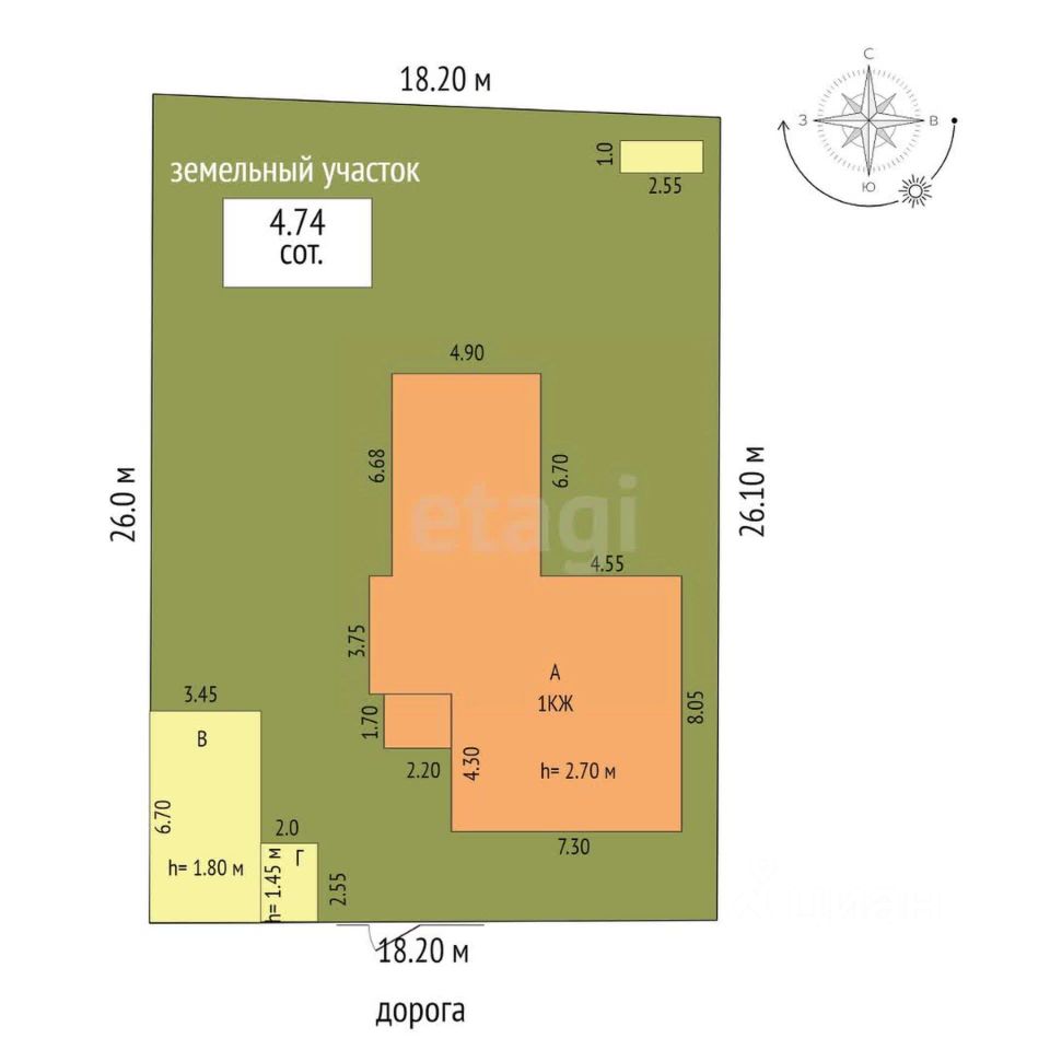 Подвал площадью 5 кв.м., выполненный из бетона, обеспечивает дополнительное пространство для хранения урожая и хозяйственных нужд.