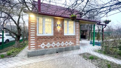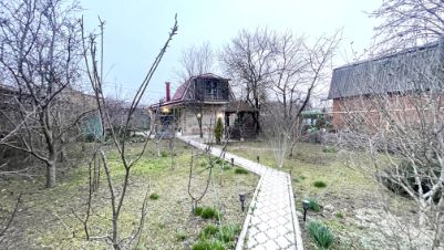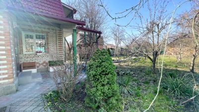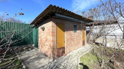 На участке плодоносящий сад (груши, яблоки, персики, сливы, абрикос, виноград, вишня, черешня, ежевика и др). Есть летний душ и туалет, хоз. постройки.