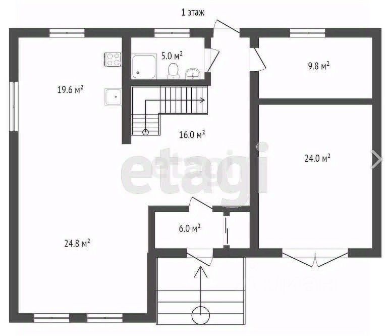 На первом этаже находится просторное помещение кухни-гостиной, холл, гостевой сан./узел, техническая комната, вход в тёплый гараж.