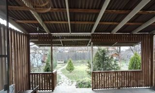 Просторная , стильная беседка из дерева, выход на нее возможен с кухни-гостиной , которая 45 м.