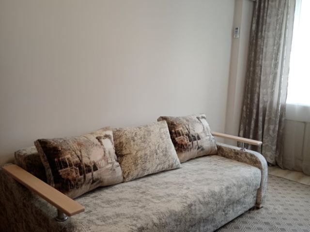Просторная 1 ком. квартира, если поставить в кухне ещё мини диван, будет как 2 х. ком. В комнате стоит один диван, есть место для второго. 25т.р залог. Если просрочили платеж, считаться по суточной 5500 тр.