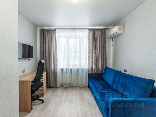 Квартира расположена на первом этаже кирпичного дома, построенного в 1975 году. Первый этаж высокий. Окно на уровне 1,8 метра. В квартире выполнен косметический ремонт, а именно: новые обои, линолеум, кухня в сборе, стол, прихожая. После ремонта ещё никто не жил. Установлена новая бытовая техника. Просторная жилая комната оснащена шкафом и удобным диваном. Из мебели имеется рабочий стол, стул и телевизор.