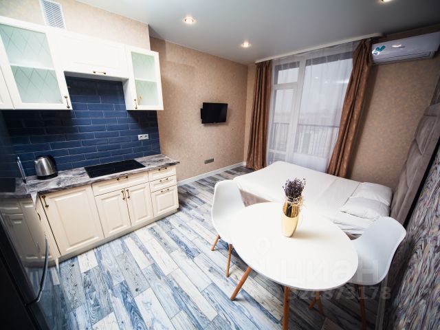 Сдаётся студия с завораживающим видом, в новом доме бизнес класса Левенцовский. С высоты 22 этажа открывается вид на район, бескрайние поля и луга, реки и озёра, а в хорошую погоду на горизонте можно увидеть Азовское море и Таганрогский залив. Чудесные закаты и рассветы гарантированы . Одним словом романтика Дом расположен в самом сердце Западного района : рядом кинотеатр Феникс, ТЦ Золотой Вавилон, кафе, бары и рестораны. Дизайнерский ремонт, панорамное остекление, бесплатная парковка, круглосуточное видеонаблюдение, охрана и консьерж. Квартира оснащена абсолютно всем, что может потребоваться как на короткий ,так и на более длительный срок: — Двухспальная дизайнерская кровать, с анатомическим матрасом. — Холодильник, мультиварка, сплит-система ,чайник — Стиральная машина и порошок, сушилка для белья, а также прочие мелочи для комфортного проживания — Полный набор посуды и техники для приготовления пищи — Тёплые полы в ванной Удачное расположение и инфраструктура - дом находится в пешей доступности с авторынком Фортуна, Школа милиции/ Ростовский юридический институт МВД РФ, Областная больница , ЮФУ, ТЦ Талер,ТЦ Золотой Вавилон, гипермаркет Окей, Лента, Магнит , Метро.