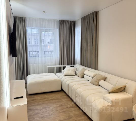 - **Гостиная-кухня* наполнена светом, создаёт уютную атмосферу для отдыха и встреч с близкими.