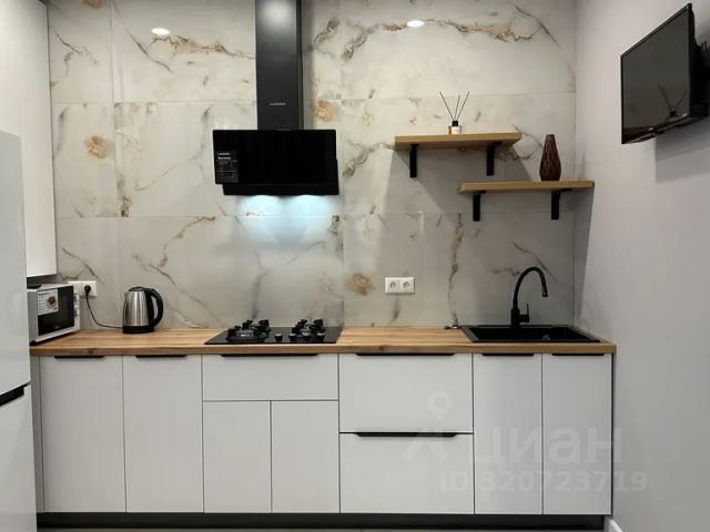 — Двуспальная кровать 160*200,диван-кровать 120*200, холодильник, варочная панель, микроволновая печь, чайник, посуда.