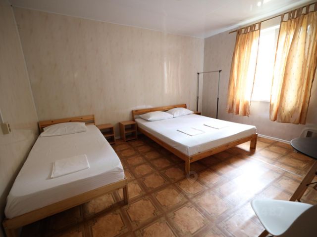 Площадь номера 30,3 кв.м. Размещение в номере - до 2 чел. В прихожей: встроенный шкаф, чемоданница, зеркало. Комната: двуспальная кровать, прикроватные тумбочки, диван, журнальный столик, телефон, телевизор, DVD-плеер, мини-бар (за отдельную плату), кондиционер, сейф. Ванная комната: туалетные принадлежности, комплект полотенец, полотенцесушитель, бритвенный набор, фен, халат, тапочки. Снять комнату посуточно в Азовском районе Ростовской области.