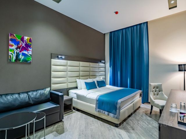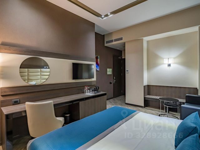 Отель "Венеция" — новый комфортабельный отель, расположенный в самом центре Ростова-на-Дону. Он находится в непосредственной близости от Главного железнодорожного и Автовокзала, что делает его идеальным местом для путешественников. Всего в нескольких шагах от отеля расположены деловая и историческая части города, а также множество парков, бизнес-центров, кафе и ресторанов. В 50 метрах от отеля находится остановка общественного транспорта, что позволяет легко добраться до всех уголков города. В отеле предлагается 16 современных номеров различных категорий, каждый из которых оснащен всем необходимым для комфортного проживания. В каждом номере есть телевизор, холодильник, сплит-система, ванная комната с душевыми принадлежностями и бесплатный Wi-Fi. Для удобства клиентов предусмотрен бесплатный трансфер с и до вокзала и аэропорта, что позволяет легко добираться до места назначения. Сотрудники отеля всегда готовы помочь и доставить в номер блюда русской или европейской кухни из ресторана. Для всех проживающих также предоставляется бесплатный кофе и чай, что создает атмосферу уюта и заботы о гостях. Отель "Венеция" становится идеальным выбором для тех, кто ищет сочетание удобства, уюта и доступности в самом центре Ростова-на-Дону. Мы обеспечиваем высокий уровень сервиса и индивидуальный подход к каждому гостю, чтобы ваше пребывание у нас стало ярким воспоминанием. Приезжайте и оцените все преимущества нашего отеля! Мы будем очень рады видеть Вас в нашем отеле "Венеция" в любое время года! Номер класса студия в Гостинице "Венеция". ЖК-телевизор, сплит-система, одна большая двуспальная кровать, диван, холодильник, письменный стол, светильник, стулья, одноразовые тапочки, туалетные принадлежности.