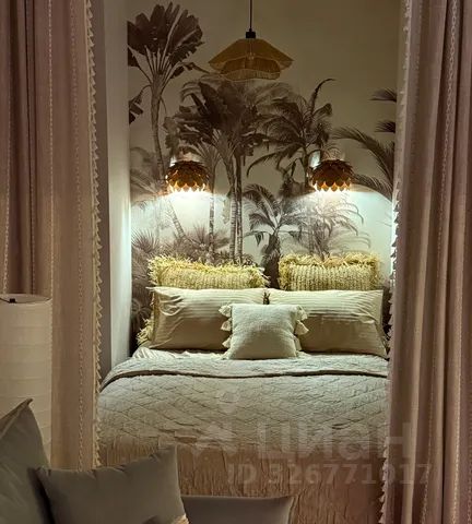 В спальной зоне двухместная кровать 140х200 см с удобным матрасом, хлопковым постельным бельём и стильными подушками, а также уютные шторы, которые создают атмосферу уединения и спокойствия.