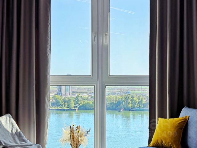 Предлагаем для проживания видовую студию с панорамой на реку Дон, расположенную в жилом комплексе "Город у реки" в Пролетарском районе, с удобным заездом от трассы М4.