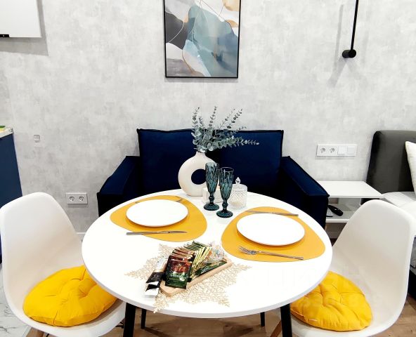 Загляните к нам в студию Аквамарин — будет уютно! Дом нaходитcя в новом ЖК бизнес класса "Кpиcтaлл-2"на центральном проспекте города. Через дорогу -Центральная гoрoдcкая бoльница имени Сeмaшко (ЦГБ), а также: -Донскoй гocудapствeнный унивеpситет (ДГТУ) , -Конгpесс-холл ДГТУ, -ЦМО Симплекс, -Ростовский ипподрром, -Бассейн Волна, В шаговой доступности великолепная улица Пушкинская, а так же рестораны, кафе, магазины и др. инфраструктура. В 1,5 км. (3 остановки) Аквапарк Н2О и ТЦ Горизонт, 15 минут до набережной Дона. !Подземная парковка по запросу, оплачивается отдельно в размере 700 рублей в день. Окна квартиры выходят в тихий двор, у входа в ЖК автобусные остановки общественного транспорта с маршрутами во все направления города. На первом этаже дома располагается магазин Пятерочка. Легко добраться: 5-10 мин от ж/д и автовокзала. В квартире: 1. Удобные спальные места: - Двуспальная кровать 160 на 200 см с ортопедическим матрасом и белоснежным бельем. - Кресло-кровать. 2. Компактная зона кухни с обеденной зоной, -посуда для приготовления пищи, 3. Вся необходимая бытовая техника, 4. Быстрый безлимитный Wi-Fi. Смарт телевизор с онлайн кинотеатром Кинопоиск. 5. Гигиенические принадлежности (зубные наборы, гель для душа, шампунь, свежие полотенца). 6. Шторы блэкаут обеспечат спокойный сон. 7. Сплит-система кондиционирования. 8. Водонагреватель- всегда горячая вода. Правила проживания: -В квартире запрещено курение любых видов (табак, жидкости, смеси). -Животные, к сожалению, не допускаются. Мы не несем ответственности за забытые гостями личные вещи, поэтому просим проверить квартиру перед выездом. Обратите внимание, дом новый и возможен шум строительных работ, в разрешённое время. Порядок заселения и условия аренды: -Бесконтактное заселение по онлайн-договору. При заезде оплаты принимаются только онлайн платежами и переводами. Наличные принять не сможем. -Возможность безопасного бронирования и скидки при длительном проживании. -Заселение после 14:00, выезд до 11:00; По возможности и согласованию: доступен ранний заезд и поздний выезд -Страховой депозит — 3000 ₽,возвращаем после уборки апартаментов и проверки его состояния. Хватай свой ключ от комфорта — бронируй Аквамарин прямо сейчас!