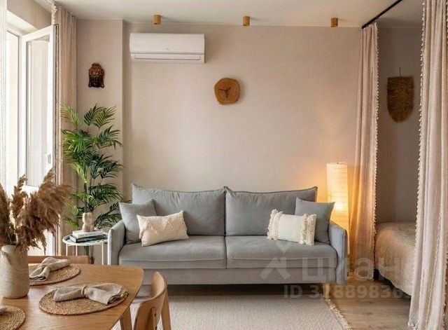 Гостиная: просторная и светлая, с двухместным диваном и стильным декором, где можно расслабиться после насыщенного дня.