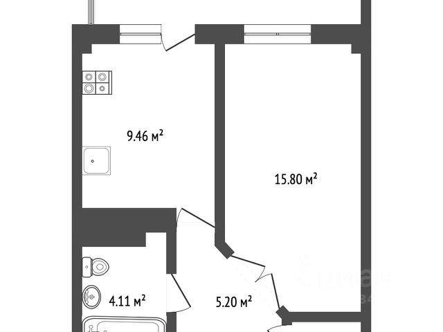• Общая площадь 43 м², кухня 6 м²