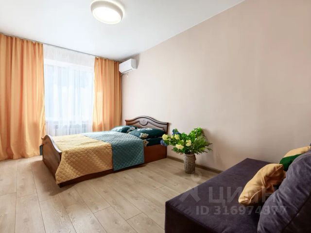 Квартира находится в ЖК с закрытой территорией, со своими детскими площадками, под видеонаблюдением. Квартира уютная, чистая, стильная, с новым ремонтом. В квартре отдельная комната где расположена двуспальная кровать, и большая кухня гостиная, где расположена зона отдыха с телевизором и большим раскладным диваном . Так же есть возможность разместить ещё человека на доп. спальном месте которое предоставляется по запросу. Лоджия с панорамным остеклением, оборудована для проведения тихих вечеров в уединенной обстановке.