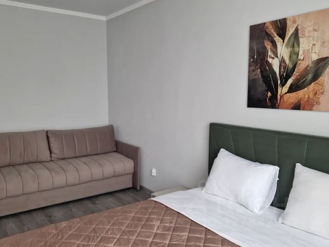 Квартира оснащена всем, что может понадобится, как на короткий срок, так и на более длительное проживание: 2х спальная кровать с новым, ортопедическим матрасом, диван, евро раскладушка с матрасом, как дополнительное спальное место, кондиционер, телевизор, СВЧ, холодильник, утюг, стиральная машина, гладильная доска, сушилка для белья.
