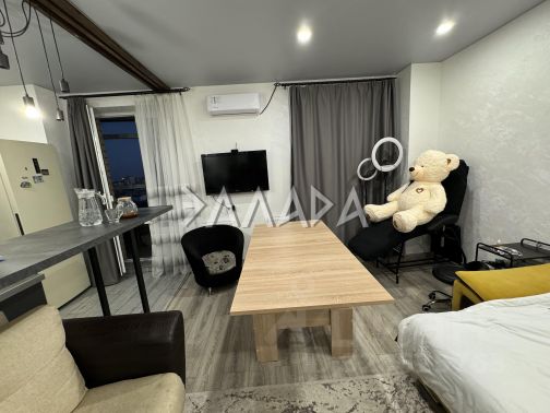 Сдаётся стильная студия с современным ремонтом в кирпичном доме 2023 года постройки. Собственник. Квартира находится на 23 этаже из 24, потрясающий вид из окна. В квартире выполнен евро ремонт. Внутри есть всё необходимое для комфортного проживания: холодильник, стиральная и посудомоечная машина, индукционная плита, чайник, шкафы, телевизор(на фото отсутствует, стоит новый смарт тв 43 диагональ). Просторная лоджия, подойдет под рабочий кабинет. Дом оснащён консьержем и пассажирским лифтом, а также имеет подземную парковку(места сдаются в аренду). Во дворе закрытая территория со спортивной площадкой. Курение допускается на балконе, проживание с животными запрещено. В доме находится озон,вайлдберриз, аптека и пятерочка. Парковая зона для прогулок, транспортная остановка прям возле дома. Квартира освобождается с 16 февраля.