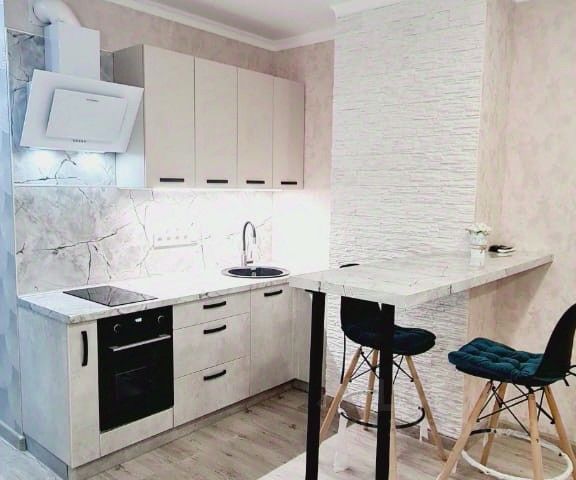 Сдаётся квартира студия с новым ремонтом, новой мебелью и техникой, всё в идеальном состоянии. Кухонный гарнитур, плита индукция, духовые шкаф, чайник, посуда новая столовые приборы, кофе машина(капсулы в подарок), стол, стулья, диван раскладной в комнате, второй диван на лоджии, большая плазма, шкаф-купе( новые абсолютно матрас, подушки, пост.белье, полотенца), гладилка, сушилка, утюг.