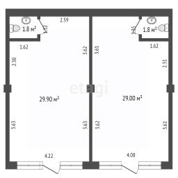 42кв.м., 2 комнаты, сан.узел.