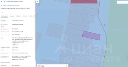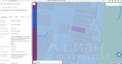 Земельный участок с кадастровым номером 61:03:0030154:423 площадь 1500 по адресу Российская Федерация, Ростовская область, Багаевский муниципальный район, Елкинское сельское поселение, х. Елкин, ул. Стадионная, 4/32