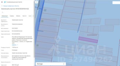 Земельный участок с кадастровым номером 61:03:0030154:422 площадь 1500 по адресу Российская Федерация, Ростовская область, Багаевский муниципальный район, Елкинское сельское поселение, х. Елкин, ул. Стадионная, 3/25