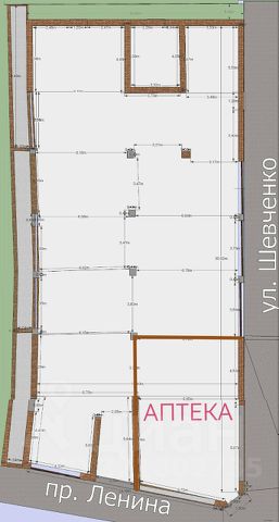 Фасадное помещение свободного назначения площадью 205 кв. м по адресу проспект Ленина, 68.