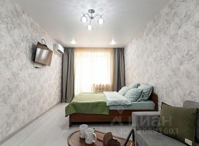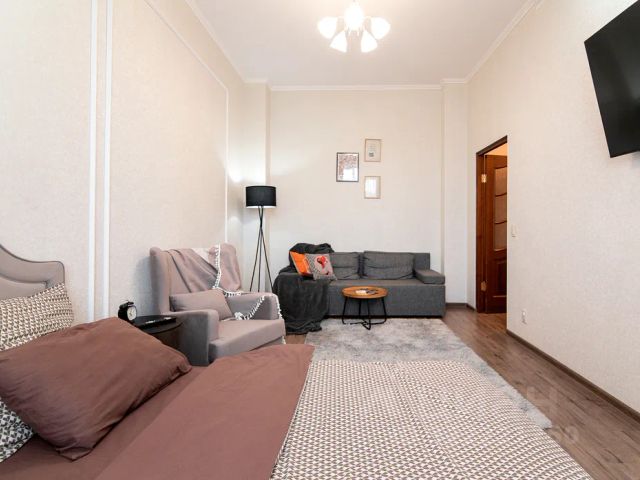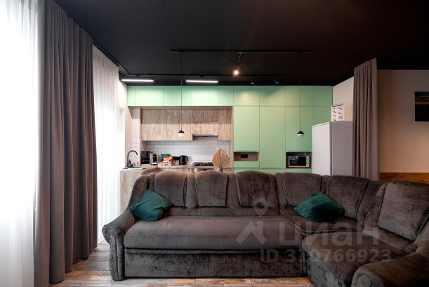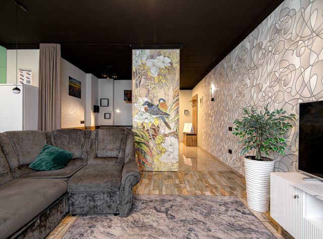 — Большая гостиная с раскладывающимся диваном, есть свой смарт телевизор, совмещенный санузел с ванной, кухня.