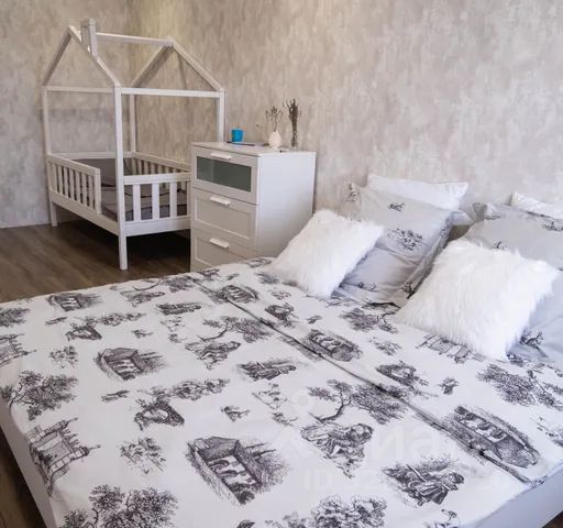 — Спальня с большой кроватью и детской кроваткой. Бонусом есть детские игрушки и раскраски